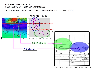 DIAGNOSE-KRITERIEN: Analyse aller erfassten Daten, indem diese untereinander in Beziehung gesetzt wurden; Kalibrierung des geoelektrischen stratigraphischen Modells sowie Festlegung des geotechnischen Modells für den lasttragenden Bereich.
